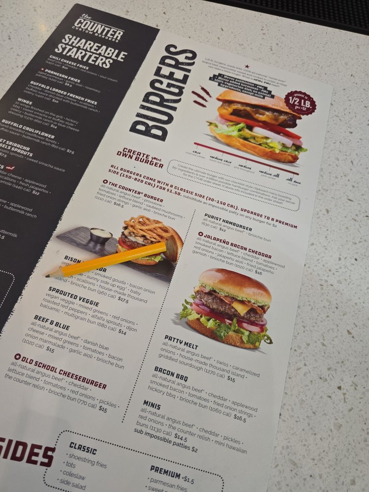 all-natural beef* tillamook cheddar lettuce blend tomatoes red onions pickles the counter relish brioche bun