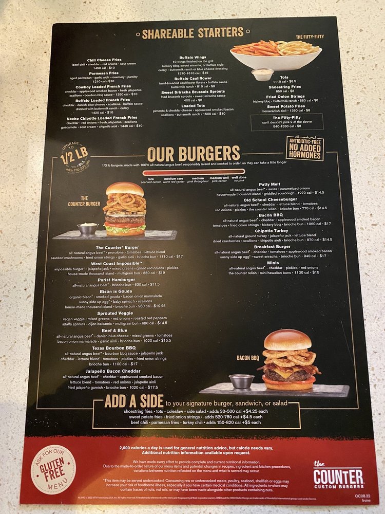 The Counter at Park Place offers a diverse menu with options for all dietary preferences, including vegan choices. Located in Irvine, CA, this restaurant provides various utilities such as delivery, takeout, and even accepts cryptocurrency. Customers rave about the Hatch Green Chile Burger and Hatch Chile Chicken Taquitos. The starters like Loaded Tots and Nacho Tots are also highly recommended. The staff, especially Martha and Kim, are praised for their exceptional service. Overall, the ambiance is relaxing, and the food is consistently good. Reviews mention friendly and knowledgeable servers like Rochelle and Shoal. While some customers had mixed experiences with service, the majority agree that The Counter is an excellent choice for a delicious meal.